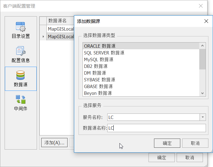 在客户机上安装配置Oracle客户端,并安装MapGIS后,可在MapGIS中配置 Oracle 数据源,用来管理Oracle数据库。