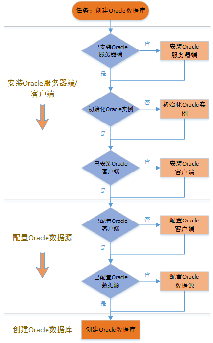 Oracle数据库是甲骨文公司的一款关系数据库管理系统。MapGIS平台可直接连接 Oracle 数据源并创建数据库。下图为MapGIS使用Oracle数据库的流程图: