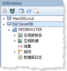 MapGIS GDBCatalog目录下只默认列出了本地数据源MapGISLocal、MapGISLocalPlus。本地数据源MapGISLocal/MapGISLocalPlus是系统默认的数据源,与本地.hdf/hdb格式的地理数据库建立连接,该数据源不可更改或删除。