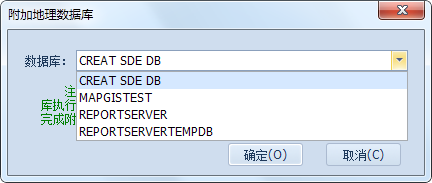 2. 该附加功能仅支持对数据库服务器中有效的,且尚未附加过的数据库使用。所谓“有效”的地理数据库,是指已经结构化、序列化的地理数据库,包含有MA表和MF表。即用户在SQL Server服务器中自己创建的一般数据库不能进行直接的附加。