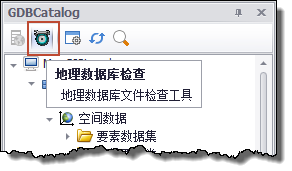 在进行地理数据库的附加之前,一般要检查该数据库的合法性。在MapGIS GDBCatalog目录中,提供了地理数据库检查工具: