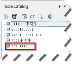 3. 添加成功后,在MapGIS GDBCatalog节点,可看到对应的数据源信息;