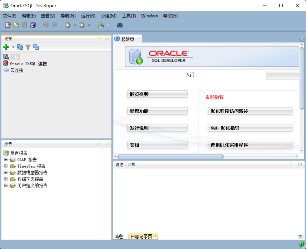 1. 启动SQL Developer工具,弹出如下所示对话框: