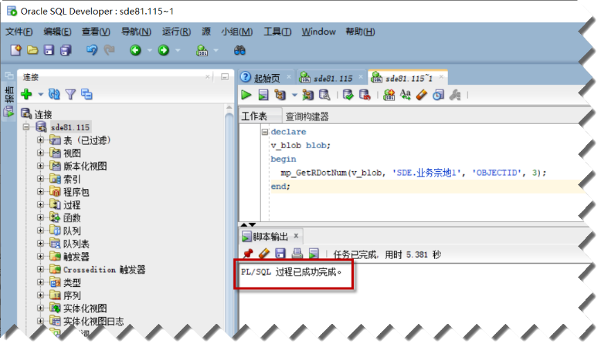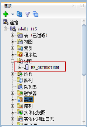 此时会在登录用户下(如示例中的sde用户)创建存储过程mp_GetRDotNum