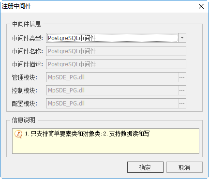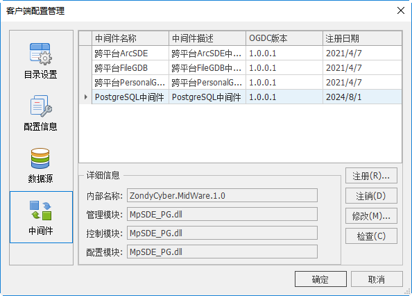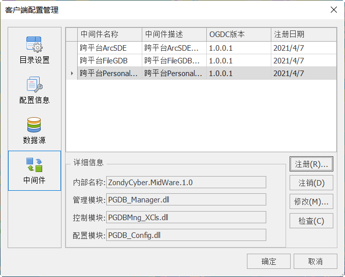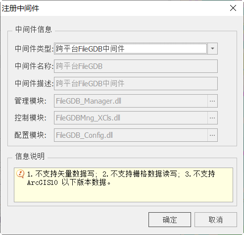在使用ArcGIS PersonalGDB/FileGDB数据前,需先注册中间件,一般情况下,系统已默认添加,若无ArcGIS PersonalGDB/FileGDB中间件时,用户可手动添加。