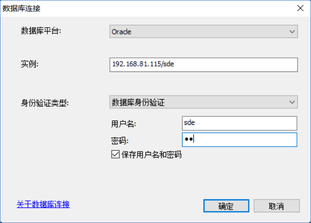 - 【地理数据库管理员】:可单独设置ArcGIS Oracle数据库的用户名及密码信息;