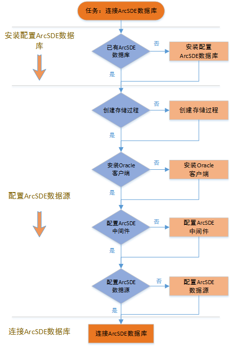 ArcGIS Oracle数据库的安装配置步骤可参考ArcGIS相关安装部署手册,此处以ArcMap为例,简单讲解ArcGIS Oracle数据库的安装配置方法,其基本流程包括如下六个步骤:
