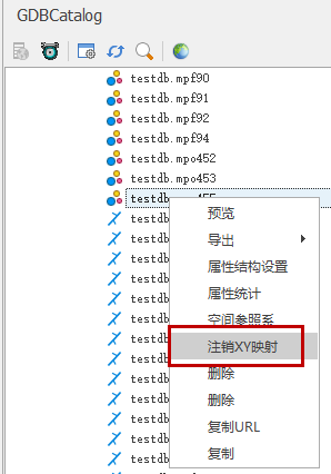3. 若用户不再使用该点简单要素类,可在点简单要素类右键中执行"注销XY映射"操作,即可注销该点数据。