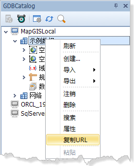 将当前的数据库从数据库服务器MapGIS GDBCatalog里卸载掉,该操作只是从MapGIS GDBCatalog中将数据库移除,"*.hdf"或"*.hdb"文件未被删除。所以用户可以通过附加功能,再次添加使用这个数据库。