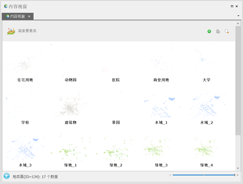对简单要素类在内容视窗中的使用和操作,参见“地理数据库服务器视图”的相关内容。