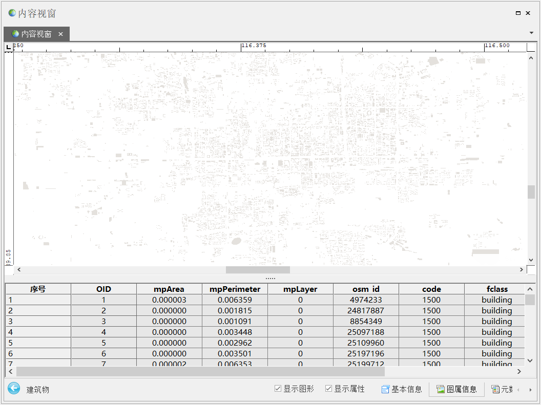 在要素的图属信息视图中,用户可以通过勾选“显示图形”或“显示属性”来控制要素在内容视窗中的显示内容。