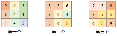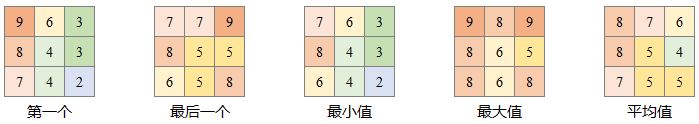 假设有三个完全重叠的栅格,其排序关系与像元值如下所示: