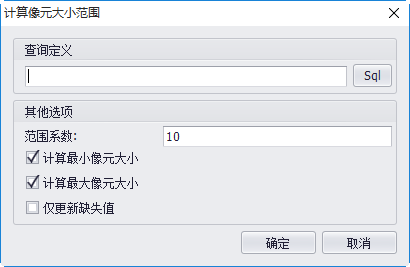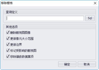 - 【查询定义】:此条件不能为空。移除栅格时,必须设置SQL查询语句,只对符合条件的栅格进行操作;