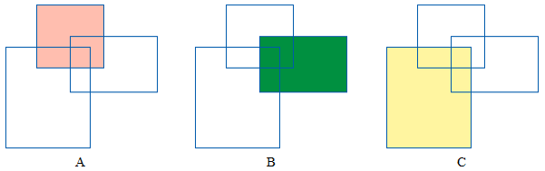 假设在镶嵌数据集中依次添加A、B、C三幅部分重叠栅格,其位置关系如下所示: