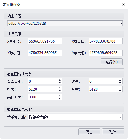 - 【重采样方法】:生成概视图的重采样方法。目前提供“最邻近重采样”,对于专题数据,可选择最邻近法。