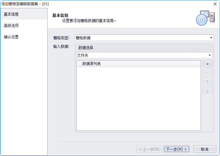 - 【+】:添加文件夹或栅格文件数据源;