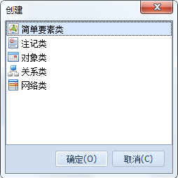 2. 右键菜单中选择“创建”项,弹出“创建”选择对话框(如下图),选择要创建的类型,点击"确定"按钮,进入相应类的创建流程。
