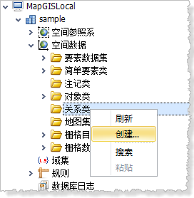 MapGIS GDBCatalog目录关系类文件夹下的右键功能。删除用户不需要的关系类。