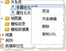 系统提供了关系类的复制功能。您可以复制关系类图属信息(包括关系和与之相关的要素类信息),或复制关系类所在位置的URL。