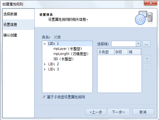 另外,子类型并非创建属性规则的必要条件。但是,当选择的要素具有子类型时,在属性规则创建的“设置信息”页上的“基于子类型设置属性规则”项被激活,您可以勾选该项,然后创建基于子类型的规则。