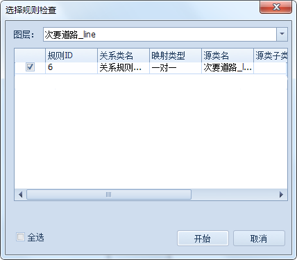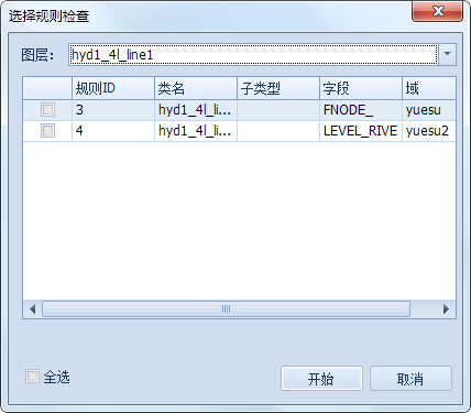4. 在“选择规则检查”窗口上,勾选需要进行属性检查的项,单击“开始”,进行属性规则检查。