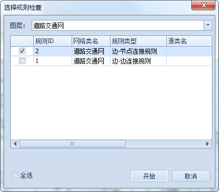 4. 在“规则检查”对话框中,勾选要检查的连接规则,然后单击“开始”开始对网络类进行相应规则的检查。