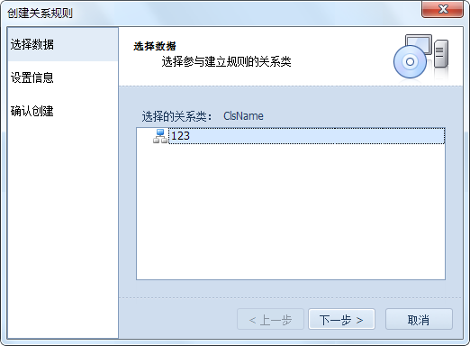 2. 在“创建关系规则”向导的“选择数据”页面上选择要创建规则的关系类,完成选择,点击"下一步"。