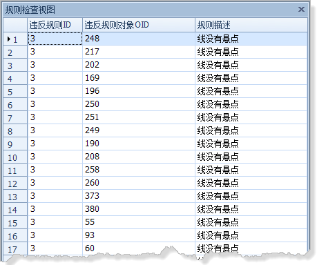 在规则检查视图上,您不仅可以查看到违反规则对象的ID号,还可以通过右键菜单,选择删除违反规则的对象。但是,需要注意的是,删除违反规则的项会删除要素的对应空间图形信息,且不可恢复。因此,执行删除操作需慎重。