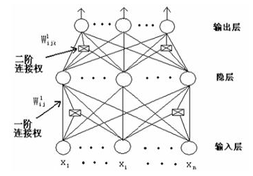 高阶前馈神经网络BP算法是在BP算法的基础上,增加了高阶连接权值。它的结构如图所示: