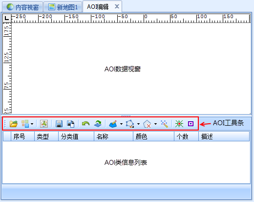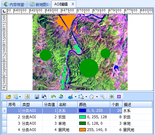 1. 点击“影像分析”菜单下的“影像分类”→“AOI编辑”命令,系统弹出“AOI编辑”视窗: