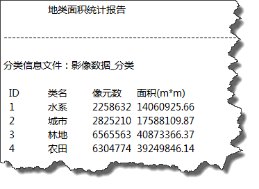 1. 点击“影像分析”菜单下的“分类后处理”→“面积统计”命令,输入地类面积统计文件(*.txt)的文件名,确定之后系统会弹出“成功导出报告文件”的对话框。