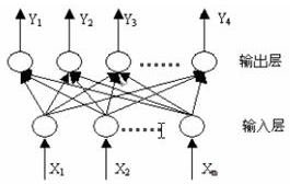 LVQ2网络结构由输入层和输出层组成。如图所示: