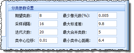 在对话框左侧选择“ISODATA分类”,对话框右下侧如图所示: