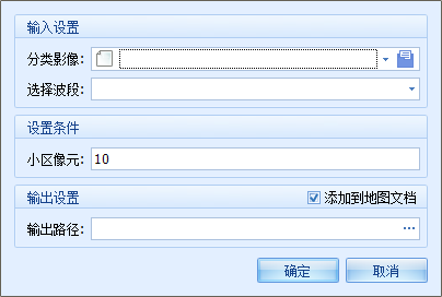 1. 点击“影像分析”菜单下的“分类后处理”→“小区合并处理”命令,系统弹出如图所示对话框: