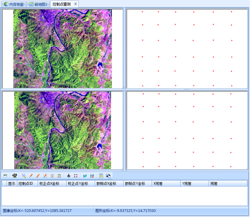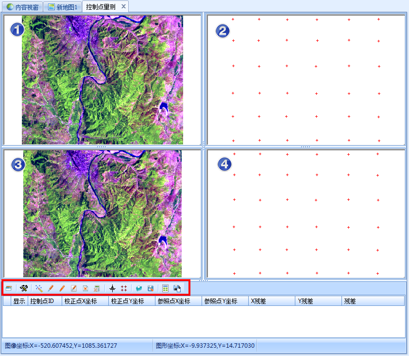 控制点的具体操作包括控制点量测工具栏和控制点量测视图两部分: