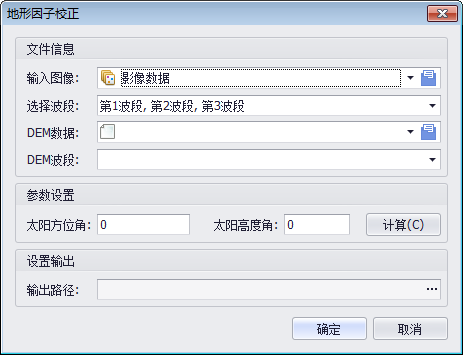 1. 点击“影像分析”菜单下的“几何校正”→“地形因子校正”命令,弹出地形校正对话框。