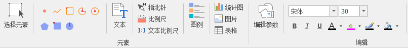 3. 添加其他制图元素如指北针、比例尺、图例等内容,各元素详细编辑操作可参考下文中对应元素的编辑说明;