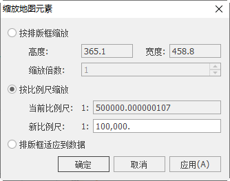 1. 选中地图然后鼠标右键,点击“缩放地图”,选择“按比例尺缩放地图”,输入新比例尺1:100000,点击“应用”,参考“地图数据设置”章节;