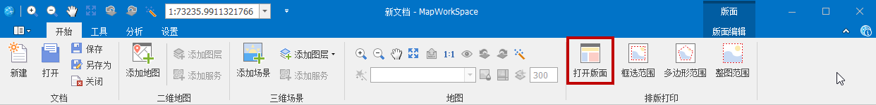 要进行版面编辑操作,首先要打开地图后切换到版面视图中: