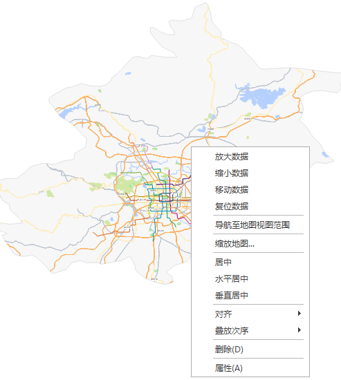 3. 右键地图弹出地图数据调整功能框,进行平移、缩放等操作,参考“地图数据设置”章节,将地图调整至需要的大小;