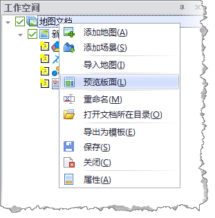 (2)或者在工作空间中,选中文档名称,并点击右键,在弹出的菜单中选择“预览版面”项。