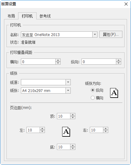 包括了“布局”、“打印机”和“参考线”三个选项卡。