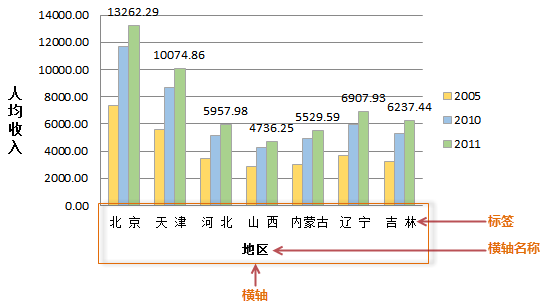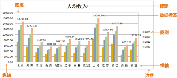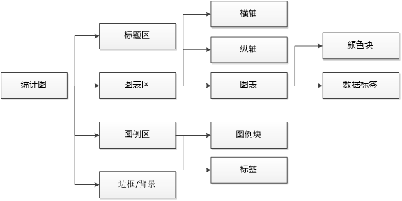 统计图主要分为三大区块:标题区、图例区、图表区,彼此独立,可不受其它区的影响任意移动。