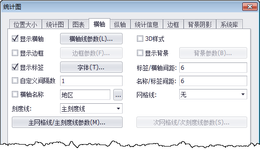 - 【横轴】选项卡:即直方图的X轴。当统计图类型非饼图时,该选项卡下的参数才有意义。