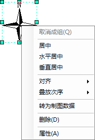 3. 选中指北针并右键点击,出现右键菜单,提供了对齐、叠放次序设置等功能,通过这些功能可以快速设置指北针与其它制图元素之间的对齐及层次关系。