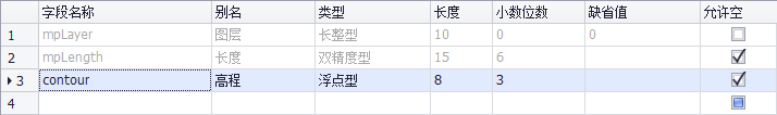 2. 工作空间视窗中右键选择该线图层,弹出右键菜单,选择“属性结构设置”,在弹出的对话框中添加一个表示高程的字段(例如:contour高程),字段类型必须是浮点型或双精度型,设置完成后点击"确定"关闭对话框;
