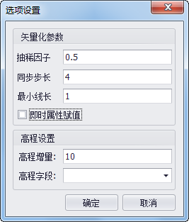 矢量化设置是扫描矢量化模块中非常重要的功能。用户通过这些设置,指定如何追踪栅格数据用以构造矢量数据的几何形状,以及高程值的设置。