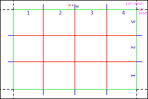 - 【网格】:网格分“方里网”和“经纬网”,“方里网”以米为单位进行划分,“经纬网”以度为单位进行划分。下图以大红色实线标注,图中所示为没有“网线外延”的“实线”样式。