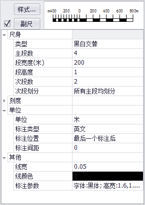 - 【尺身/刻度/单位/其他】:设置比例尺样式,如大小、颜色等,各参数设置在此不做详细说明。