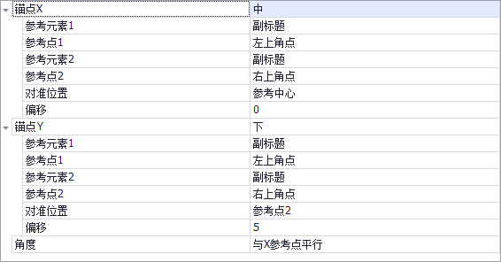 - 【角度】:分为三种情况,“水平”即该元素角度为0,“与X参考点平行”即该元素与确定锚点X的参考元素平行,“与Y参考点平行”即该元素与确定锚点Y的参考元素平行。